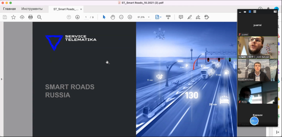 中俄企业代表就俄罗斯自动驾驶运输基础设施发展规划,特别是莫斯科至圣彼得堡高速公路、欧洲至中国走廊智能公路运输基础设施发展近况;我国自动驾驶运输与V2X技术领域的最新成就及进展;中方在莫斯科至圣彼得堡高速公路、欧洲至中国走廊启动无人驾驶运输基础设施要求、技术标准及测试的可行性等进行了初步交流。