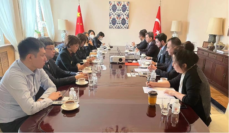 3月25日下午,北京市贸促会组织部分北京企业国际业务负责人赴土耳其共和国驻华大使馆举行座谈会。土耳其总统府投资局国家顾问沙望、使馆经济参赞查塔伊·穆特鲁、农业参赞胡塞因·加齐·卡亚、商务参赞先生赛兹根·塔什肯和科大讯飞公司、大北农科技集团、金驰天成科贸公司、茄子科技公司、鑫全盛科技公司5家北京企业高管及海淀区国际商会负责人参加座谈。