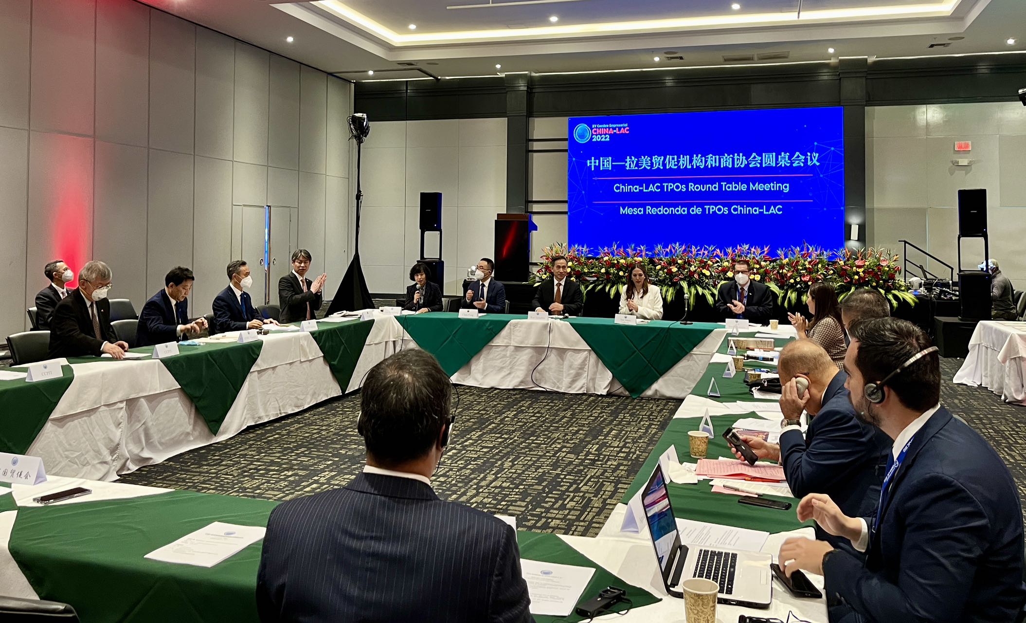 当地时间12月14日中午,第十五届中国-拉美企业家高峰会“贸促机构和商协会圆桌会议”在厄瓜多尔瓜亚基尔市隆重举办。中国贸促会会长任鸿斌,厄瓜多尔生产、外贸、投资和渔业部副部长加利亚多出席并致辞。来自厄瓜多尔中国商会、哥伦比亚-中国投资贸易商会、古巴国家商会、智利出口促进局、多米尼加中华总商会、中国墨西哥商会、墨西哥外贸、投资和技术委员会亚太委员会、拉丁美洲和加勒比地区中国商业联合会八家拉美商协会代表和中国国际商会、北京市贸促会、天津市贸促会负责人出席。与会代表围绕“新发展格局下中拉经贸合作新机遇及中拉贸促机构和商协会新使命”的议题发言并展开热烈交流。