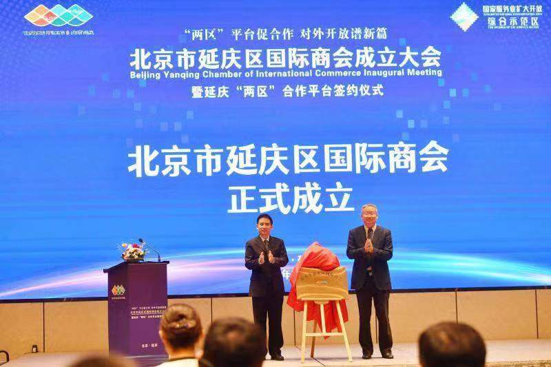 3月23日,延庆区国际商会正式成立。北京市贸促会副主任朱家亮出席成立大会并致辞,与延庆区委副书记、区长叶大华共同为商会揭牌,同时见证延庆“两区”合作平台签约。