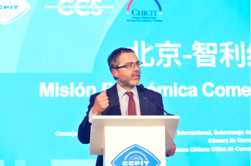 当地时间6月8日下午,由北京市贸促会与智利圣地亚哥商会、智利智中商会合作主办,中国国际贸易促进委员会驻智利代表处、中国建设银行股份有限公司智利分行支持协办的北京—智利经贸合作推介洽谈会在智利首都圣地亚哥成功举行。