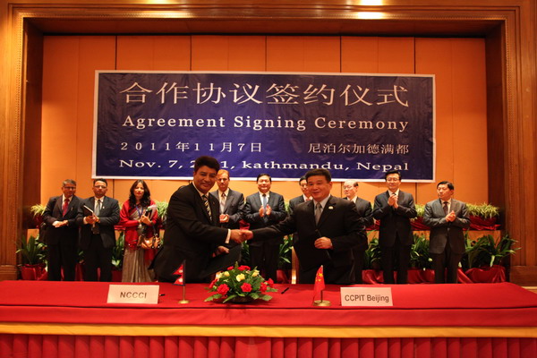 我会工作小组访问老挝和尼泊尔期间,除了根据统一安排举办了友好商会合作协议签约仪式外,还在老挝国家工商会专门组织了一场“开放大舞台上的北京贸促会”的推介会,向老挝国家工商会会长及其邀请的会员协会、企业推介了北京贸促会,引起了老方的强烈兴趣,激起了他们与我会合作的强烈愿望。我们还会晤了尼泊尔商业与供应部部长巴特、尼泊尔中国工商会会长拉杰士、尼泊尔中国工商会卡瓦分会会长普尔那,并就我会与上述机构的具体合作领域进行了探讨。老挝国家工商会会长奇萨那专门就与我会合作举办中国-老挝特色商品展览会进行了探讨;尼中工商会会长拉杰士希望今后同我会在手工艺品、金融等行业以及促进中尼中小企业发展方面加大合作力度,并就2012年尼中工商会来华金融代表团事宜进行了深入交流;拜会尼中工商会卡瓦分会时,普尔那会长与我工作小组一行考察了巴纳普市信用合作社,并深入田间地头考察了当地的花卉种植户。