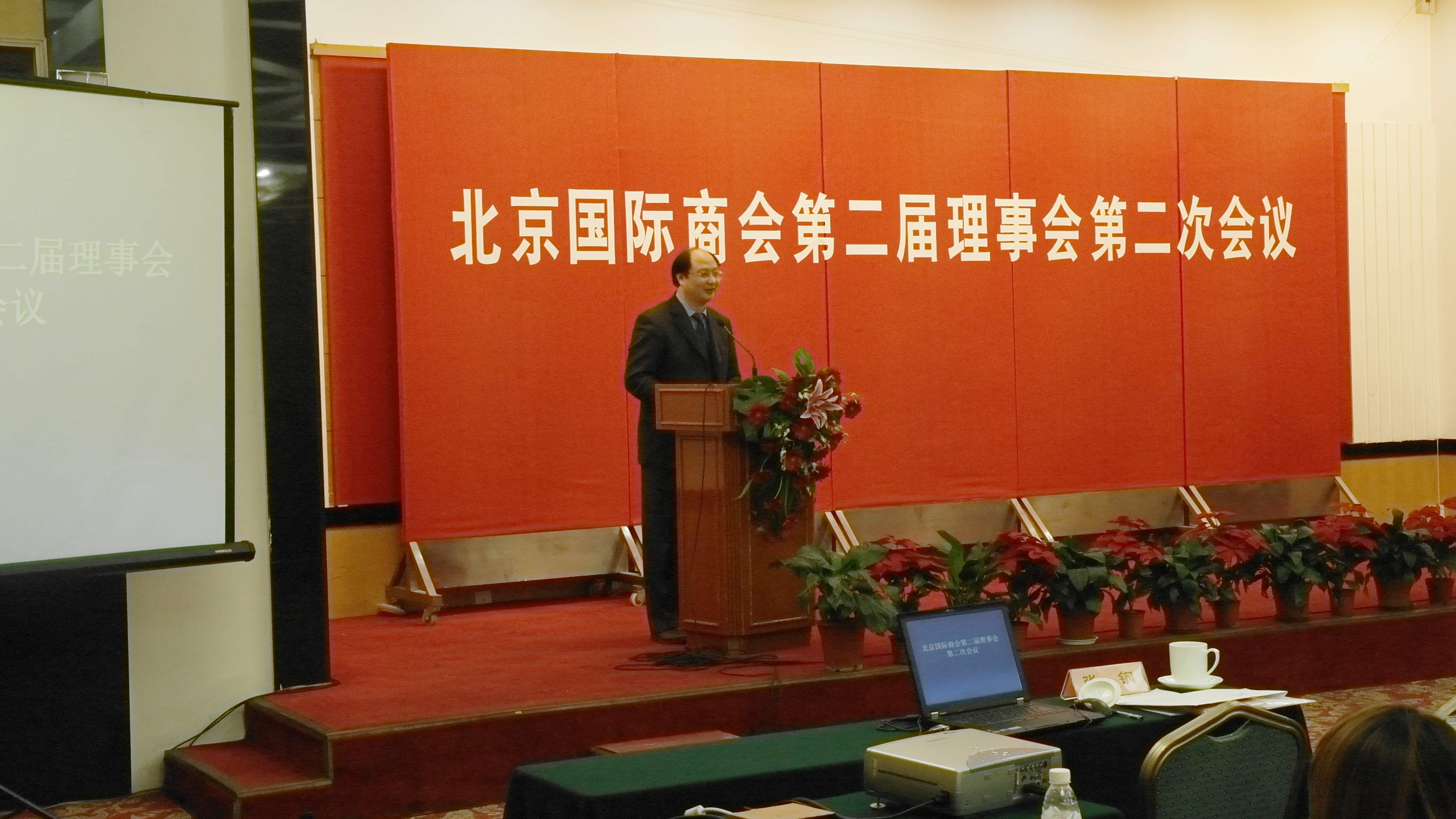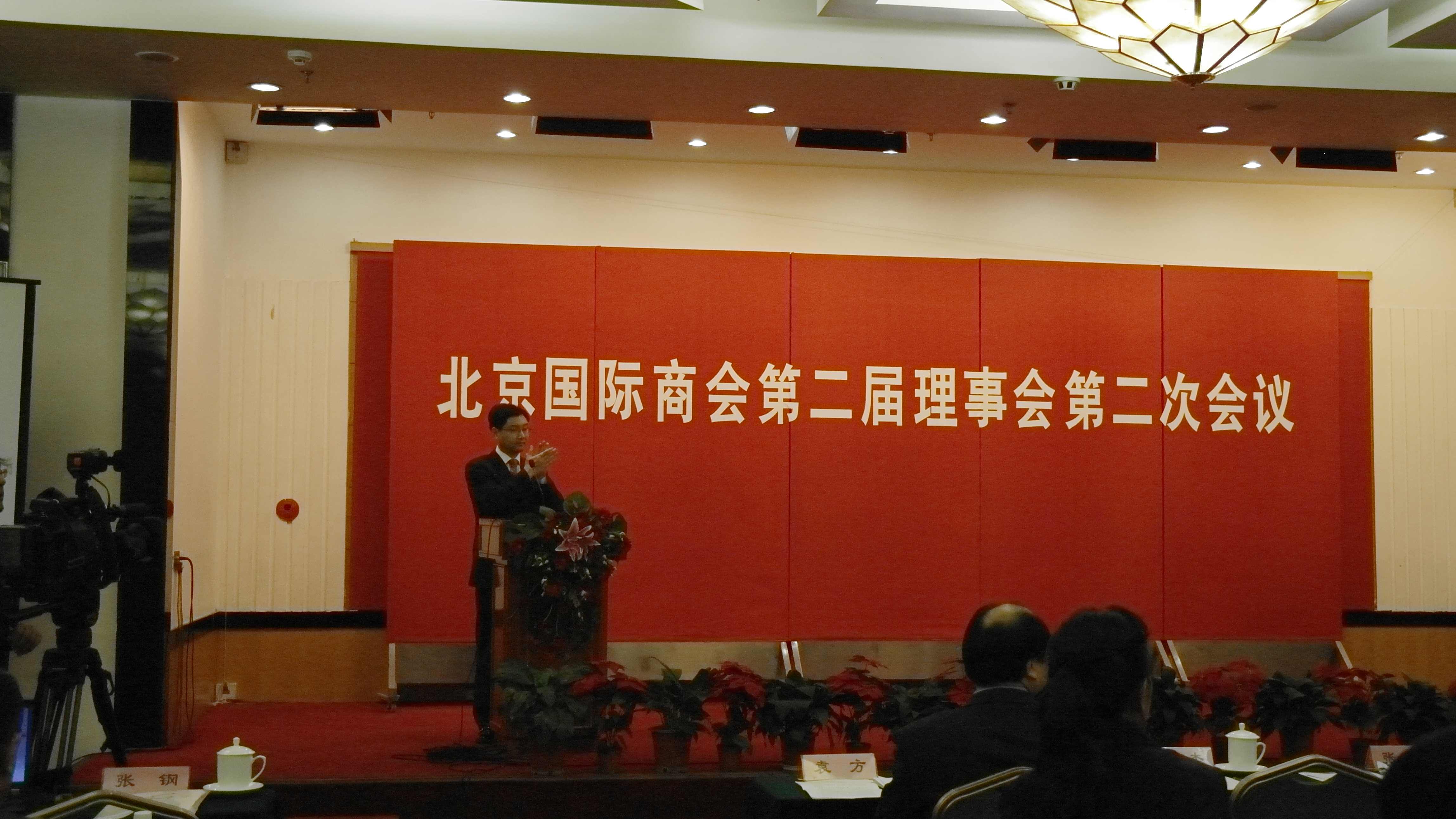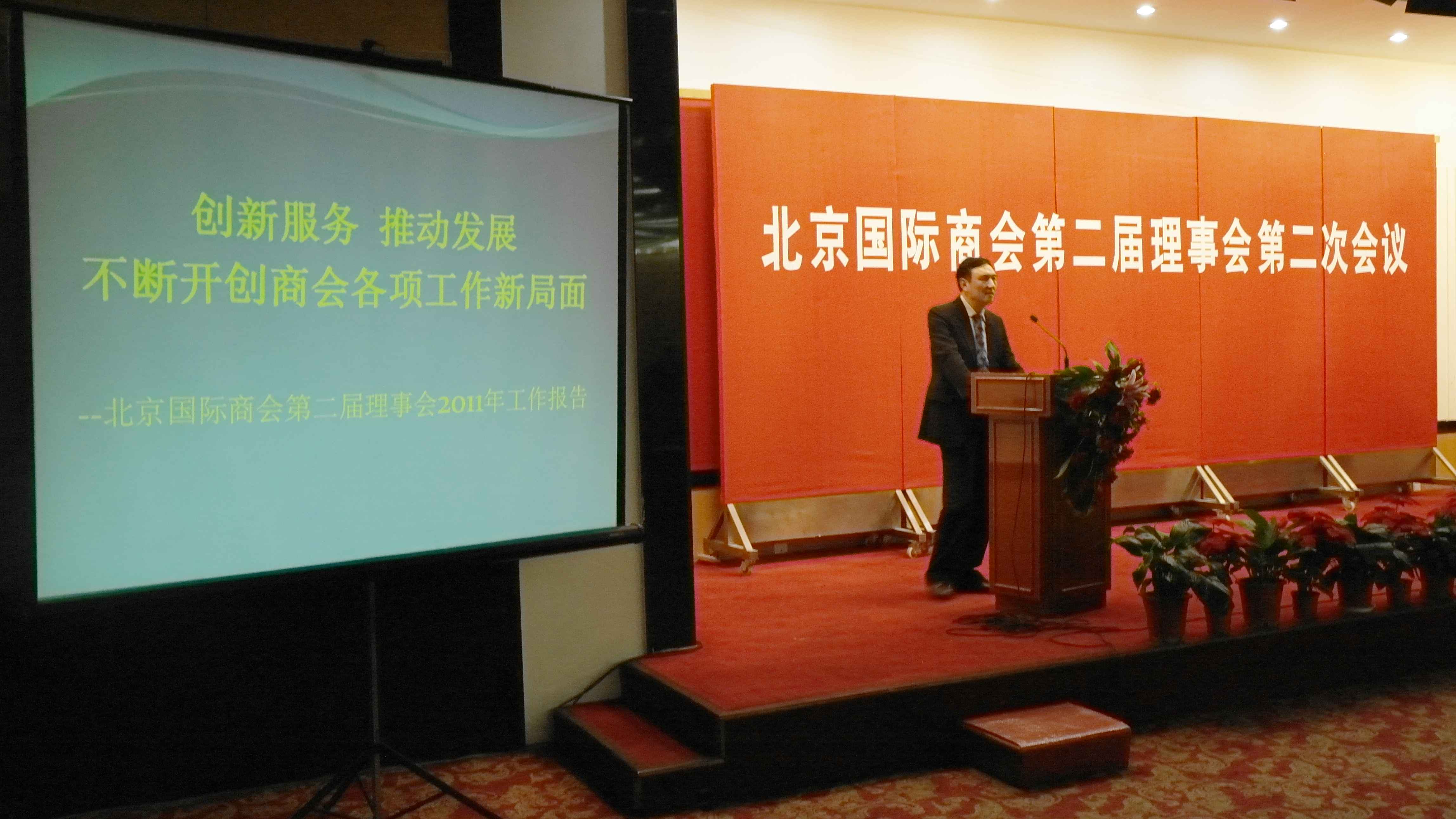 2011年12月14日下午,北京国际商会第二届理事会第二次会议在北京新大都饭店召开。中国贸促会、中国国际商会副会长张伟出席并做了专题报告。会议通报了商会副会长、秘书长、常务理事、监事会、理事变动情况和商会工作机构及人员安排;宣读了新理事侯选人名单,审议通过了新会员名单,商会内部管理制度和2011年商会工作报告和2012年工作设想。推介了北京市贸促会公共信息服务平台-京贸网。商会会员二百余人参加了会议。北京国际商会原秘书长张钢主持了会议。