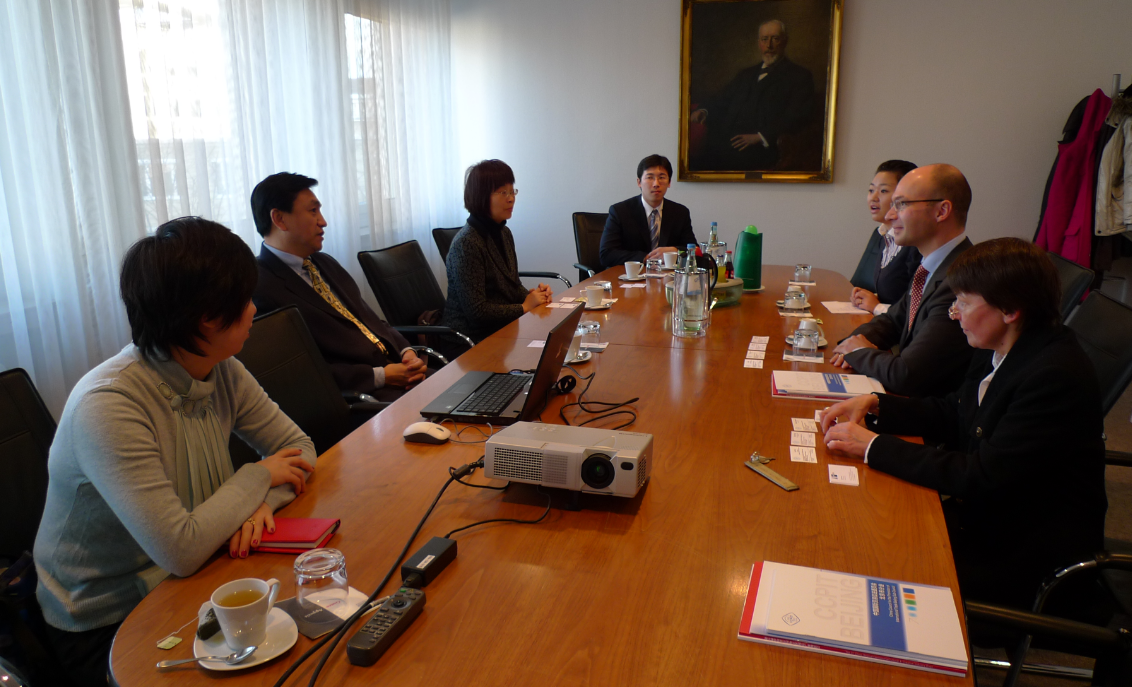 德国科隆工商会国际商务部门负责人Alexander Hoeckle先生以及中国事务负责人Gudrun Grosse女士代表商会出席了会谈。德方对北京会展业发展及行业展览会表示出浓厚兴趣,希望获得更多行业展览会的展会评测信息,一方面向当地企业进行有目的的推介,另一方面便于当地企业咨询和选择北京相关会展活动,从而增强德方企业参与在京行业展会的实效。另外,2012年9月科隆将举办中德经贸会议,北莱茵州和中国驻德使馆官员将出席会议并发表讲话,商会希望我会能够组织企业代表团赴德参会,进行宣传和经贸活动。