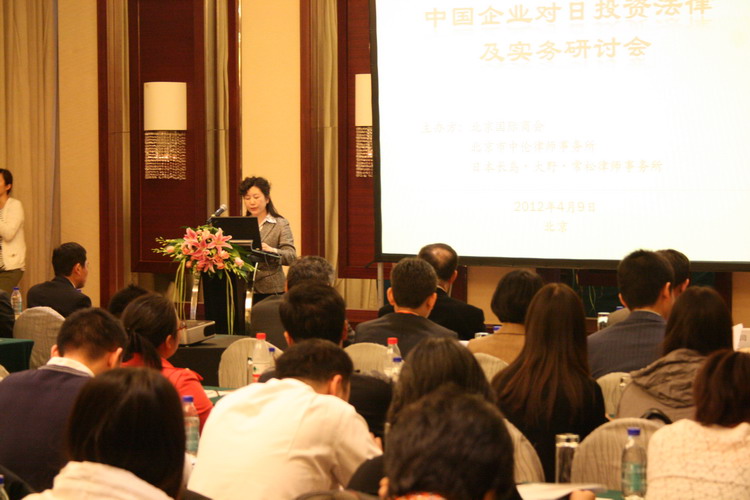 2012年4月9日下午,北京国际商会、北京市中伦律师事务所、日本长岛•大野•常松律师事务所在北京富力万丽酒店三层共同举办了“中国企业对日投资法律及实务研讨会”。北京国际商会邀请的北京汽车行业协会代表,北京国际经济贸易学会、北京市进出口企业协会、北京市私营个体经济协会、北京对外经贸控股有限责任公司等会员单位代表与北京市中伦律师事务所的合作单位代表八十余人参加了研讨会。北京市中伦律师事务所胡蓉晖律师主持了研讨会。