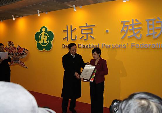 市残联吴学文副理事长为北京圣雅诗进出口有限责任公司专营“爱立方”产品授牌