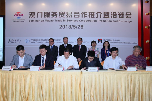澳门贸易投资促进局、北京市贸促会共同主办的“澳门服务贸易合作推介暨洽谈会”于2013年5月28日在国家会议中心成功举行,该活动是第二届中国北京国际服务贸易交易会推介洽谈的主要活动之一。
