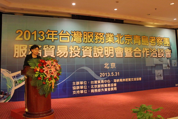 由台湾贸易中心主办、北京市贸促会协办的“台湾服务贸易投资说明会暨合作洽谈会”于2013年5月31日举行,这是台湾参加第二届中国北京国际服务贸易交易会的一项重要推介洽谈活动。
