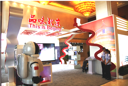 2014年APEC第三次高官会及相关会议北京市企业展览展示自8月6日正式对外迎宾。精致的展区、精美的展品、精彩的解说吸引众多参会代表纷纷驻足观看。5天来,“品味北京”展区已接待各经济体参会代表近400人次。