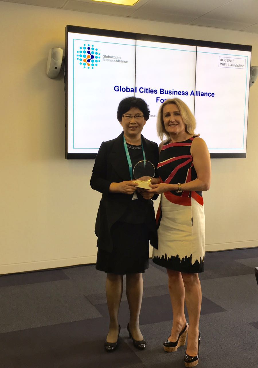 在全球城市商业论坛上,李露霞副会长与来自伦敦、巴黎、芝加哥、波士顿、布宜诺斯艾利斯等城市和艾奕康、柏克德、Engie、普华永道、麦肯锡、万事达卡公司等跨国公司的150余位代表就包容性城市的住房问题和如何促进城市与商业共同成长两个主要议题进行深入的交流和探讨,并向有关机构推荐我市重点产业。论坛还组织与会代表参观伦敦在建地铁项目,拜会金丝雀码头集团,与负责人就项目的进展情况和长期规划进行沟通。