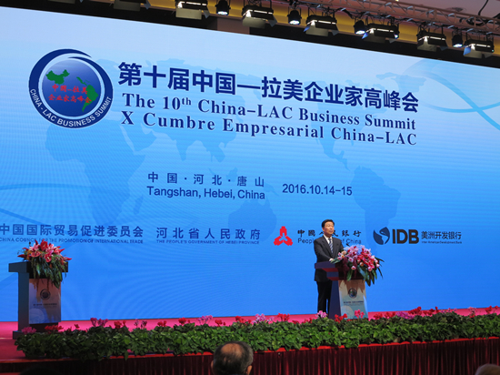 10月14-15日第十届中国-拉美企业家高峰会在河北省唐山市隆重举办。本届高峰会由中国贸促会、中国人民银行、河北省人民政府和美洲开发银行共同举办,会议主题为“携手创新、合作共赢”。高峰会受到国家高度重视。国家主席习近平发来贺信,对高峰会召开表示热烈的祝贺。国家副主席李源潮出席开幕式并致辞。开幕式前,李源潮还会见了拉美和加勒比国家主要参会嘉宾及驻华使节。
