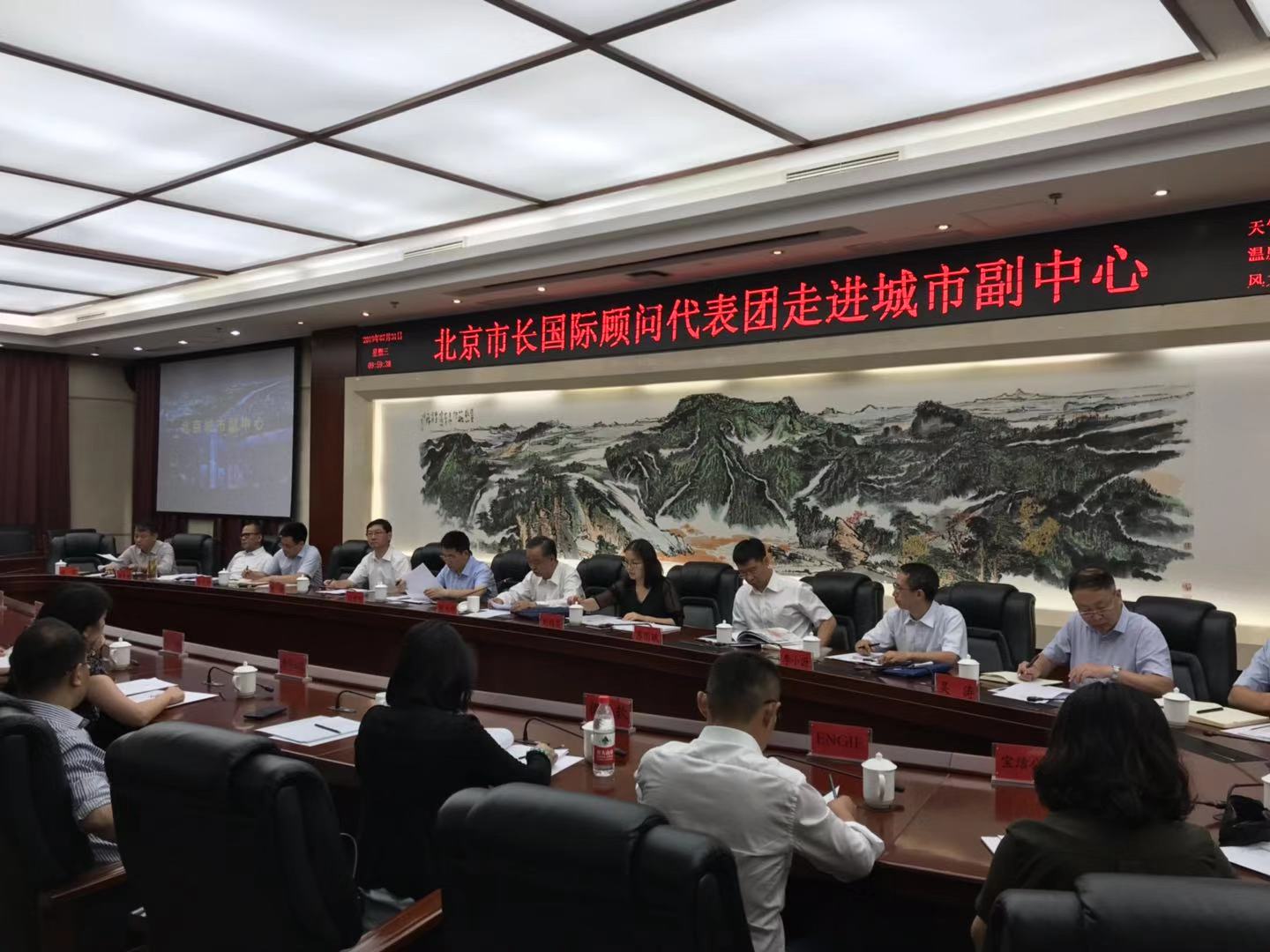 为增进国际工商界对北京深化对外开放和城市规划建设的了解,促进知名跨国企业深化与北京市合作,北京市贸促会(北京市市长国际企业家顾问会议秘书处)于2019年7月31日组织以市长顾问会成员单位为主的22家跨国公司驻京机构高管及代表赴通州区座谈交流。市贸促会党组书记、主任张永明主持会议,市商务局副局长刘梅英,通州区委常委、常务副区长刘贵明,通州区副区长苏国斌,市贸促会副主任张钢,通州区政府相关部门和市长顾问会秘书处办公室负责人及工作人员等约60人参加座谈交流。