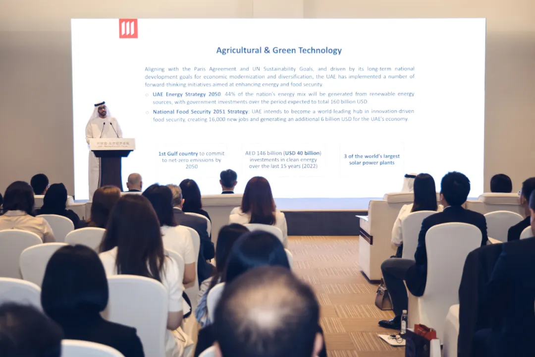 开馆仪式后,阿联酋驻华大使馆、北京市贸促会、朝阳区政府共同举办“庆祝中阿建交四十周年”系列活动之“阿联酋-北京经济论坛”。论坛以“共同繁荣四十年”为主题,聚焦先进制造、人工智能、金融等行业,服务民营科技企业开拓海外市场,搭建北京与阿联酋贸易投资双向促进平台。来自中国和阿联酋相关行业领域的150多名代表参加。