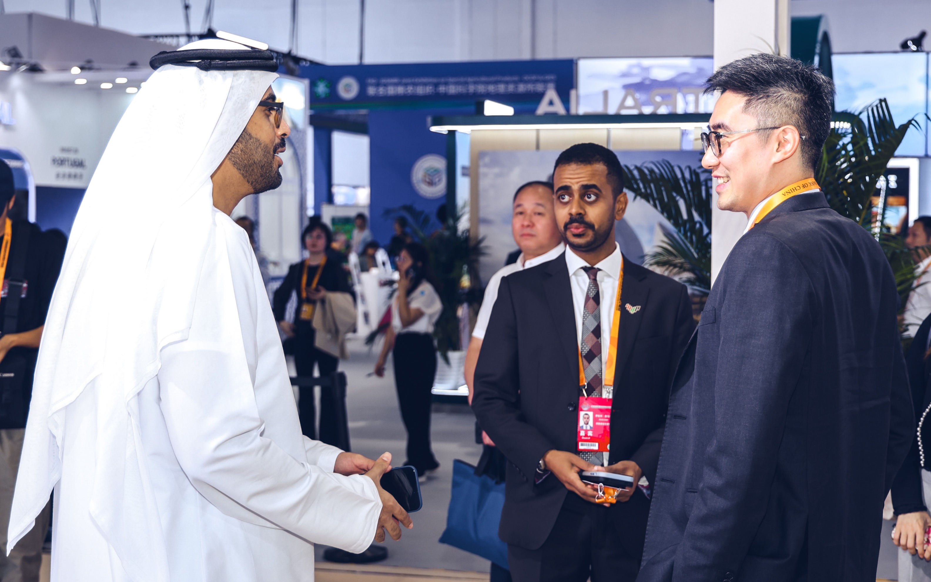 哈利德·沙赫在致辞中表示:“此次活动是深化阿联酋与中国双边关系、探索新合作领域的重要平台。阿联酋致力于与中国保持紧密合作,以不断强化双方共同的经济利益,并深化两国人民之间的文化与社会纽带。我们坚信,这一坚实伙伴关系将持续茁壮成长,为两国带来更多发展与繁荣。”“值此阿联酋与中国建交四十周年之际,我们荣幸地参与中国国际服务贸易交易会,这再次表明了我们对建立两国强大且可持续的经济伙伴关系的坚定承诺。我们的国家馆展示了阿联酋在关键行业的巨大潜力,我们正积极寻求建立新的商业伙伴关系,以促进双方的共同繁荣与发展。”