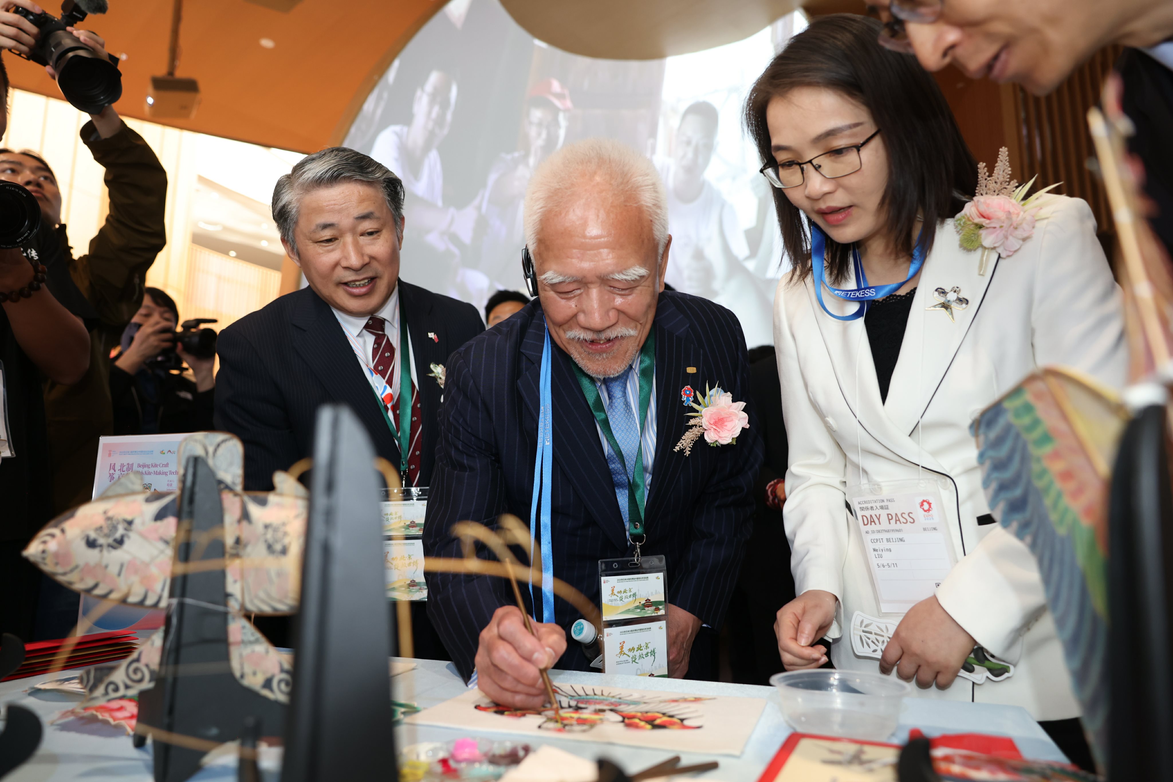 “你好,北京”摄影展,22幅作品从绿色、历史、创新等多元视角呈现北京风貌,领略北京古老建筑深厚文化底蕴的同时彰显现代北京在创新驱动下的蓬勃活力。“你好,北京”非遗展示及互动体验,造型精巧的面塑,传承 170 余年的风筝工艺和匠心独具的毛笔制作,让参与者亲手体验,领略北京深厚文化底蕴。“你好,北京”文艺演出与文旅推介,北京艺术家奉上融合了书法、太极等中国传统文化元素的舞蹈、声乐表演,中日友好交流使者介绍北京文旅资源,开启北京文旅探索之旅。