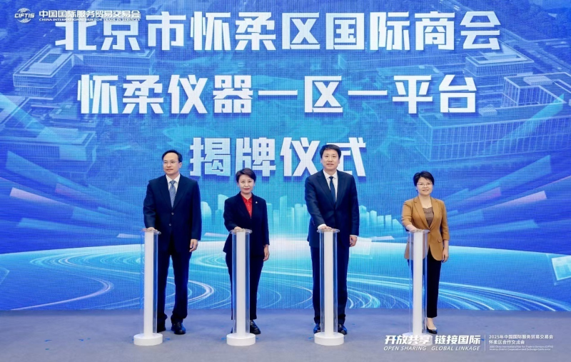 9月14日上午, “开放共享 链接国际” 2025年中国国际服务贸易交易会怀柔区合作交流会在首钢园成功举办。本次活动由怀柔区人民政府主办,中国贸促会、中国国际商会、北京市贸促会、北京市商务局等单位领导、专家学者及创新型企业代表等100余人出席会议。会上,中国国际商会秘书长孙晓、怀柔区副区长韦小萍分别致辞,北京市贸促会主任李向英与怀柔区区委副书记、区长梁爽共同为北京市怀柔区国际商会成立揭牌。